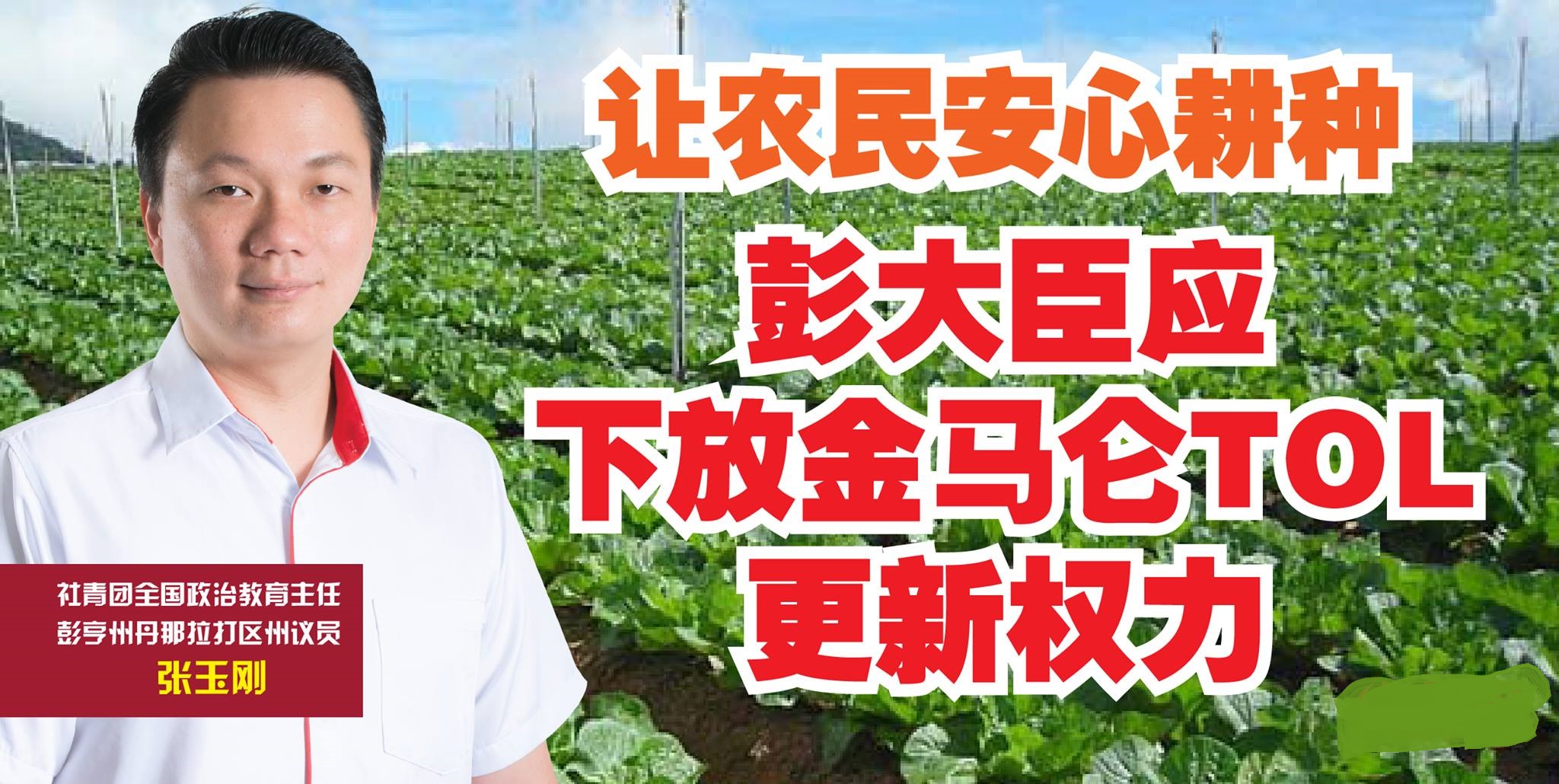 他说,州务大臣在回答他的追加提问时表示,虽然州政府已经把各项土地申请的权力下放予彭亨州各个县属的土地局,然而,由于金马仑地理环境特殊,因此土地审批的权力下放不包括金马仑土地局。土地临时使用准证迟迟无法获准更新,让农民的准证变成“逾期非法准证”,在申请外劳和菜车路税等事宜面临诸多不便,无形中也让州政府无法获得最佳的土地收益,进而影响州政府的财政状况。张玉刚要求彭亨州务大臣在推行E-LPS的空窗期,再次考虑下放土地准证更新审批的权力予金马仑土地局,让农民能够安心耕农。