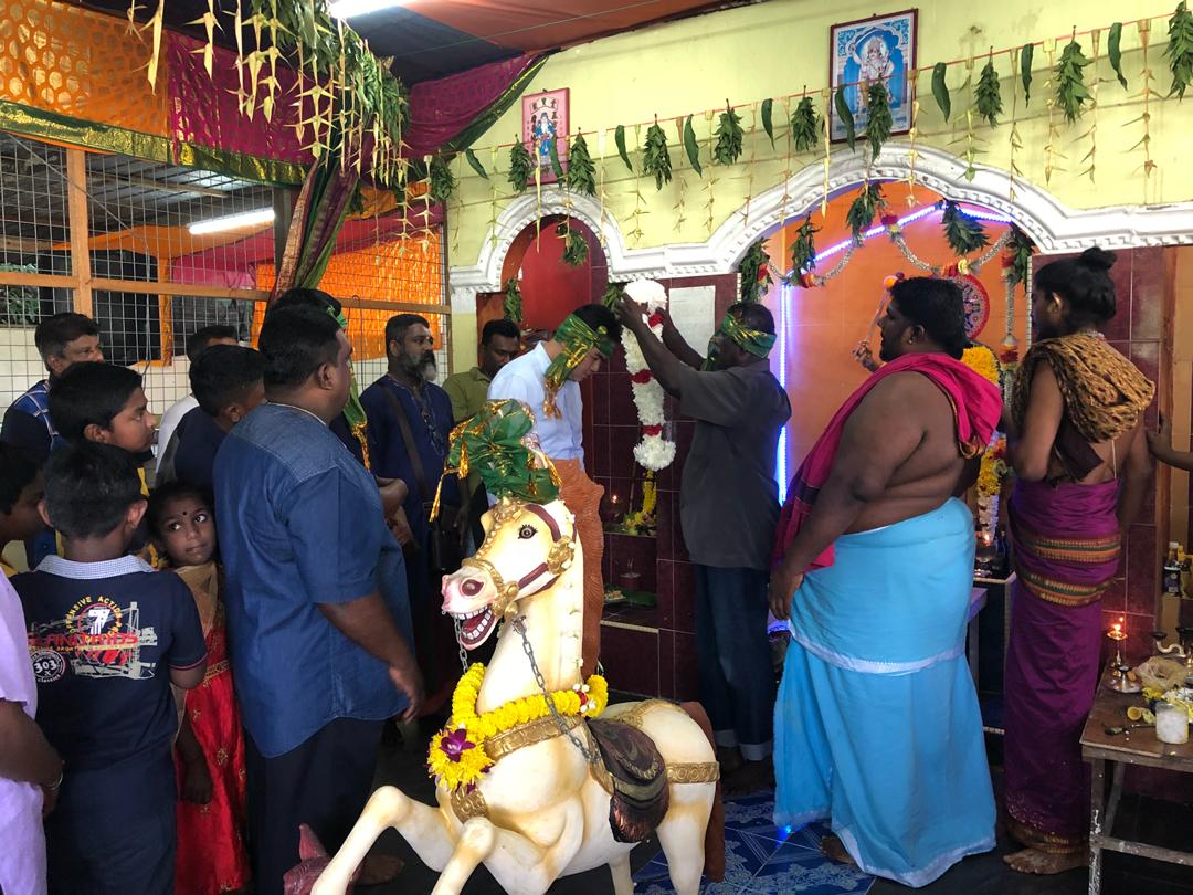 (金宝1日讯)金宝斯里马都莱维仁兴都庙(Kuil Sri Madurai Veeran)今天中午举办2019新年庆典邀请金宝克兰芝州议员张哲敏出席。大会在兴都教膜拜仪式后准备了自助午餐招待民众。大会也准备了礼篮和小礼物布施给有需要帮助的人士和弱势群体,让他们开开心心迎接新的一年。