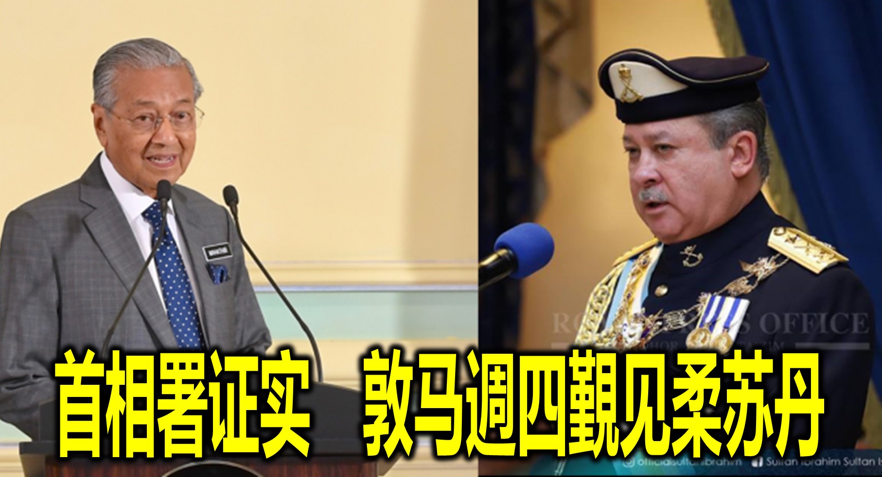 首相敦马哈迪將在本週四覲见柔佛州苏丹依布拉欣殿下!首相署消息向《东方日报》证实,首相將会在週四(1月10日)到新山覲见柔州苏丹依布拉欣殿下。这也是马哈迪在第14届全国大选再次拜相后,首次覲见柔佛苏丹。第15任国家元首苏丹莫哈末五世陛下日前宣佈退位,全国关注接任新元首一事之际,马哈迪週四將前往柔佛王宫,覲见柔佛苏丹依布拉欣陛下,不免引起揣测。