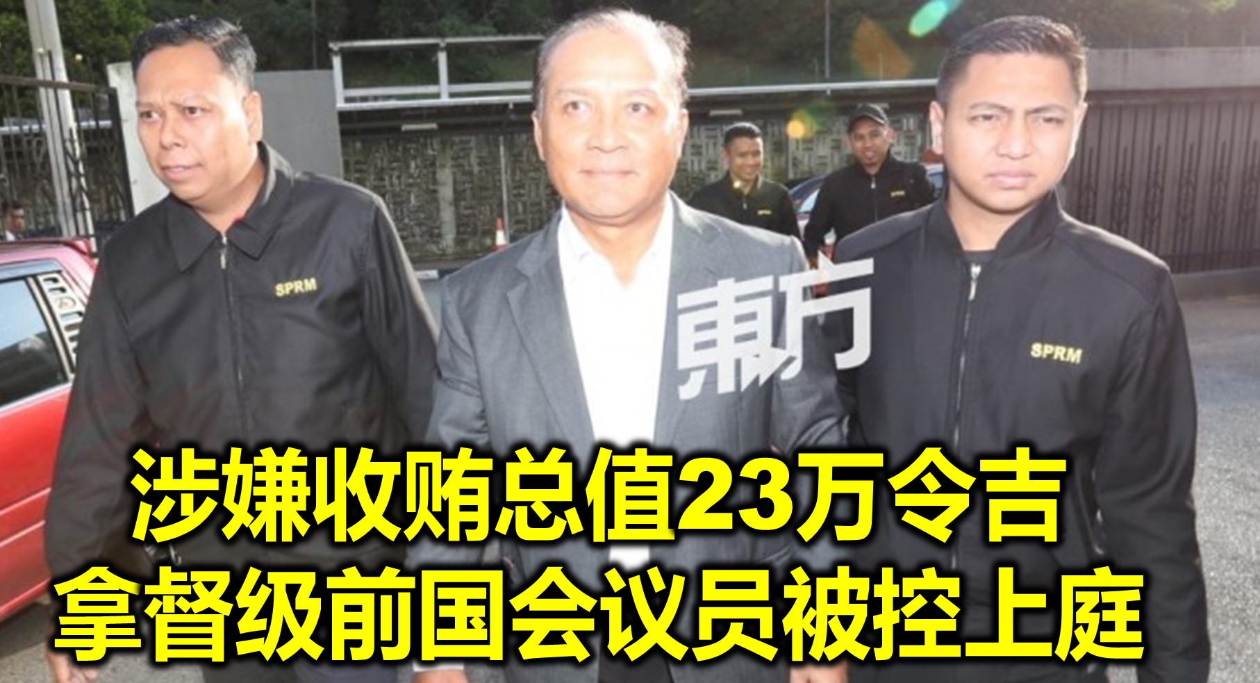 一名拥有拿督头衔的柔佛州前国会议员,被指涉嫌收贿总值23万令吉的土地及现金,於昨日在布城反贪会总部被捕,並於今日被带往新山法庭面控。该名身穿笔挺西装且无戴手銬的前国会议员於今早8时50分许,在反贪会官员护送下,现身新山反贪污法庭。面对媒体镜头时,该名前国会议员表现淡定且面露微笑,而其身份也被確定为巫统哥打丁宜前国会议员拿督诺依山努丁。