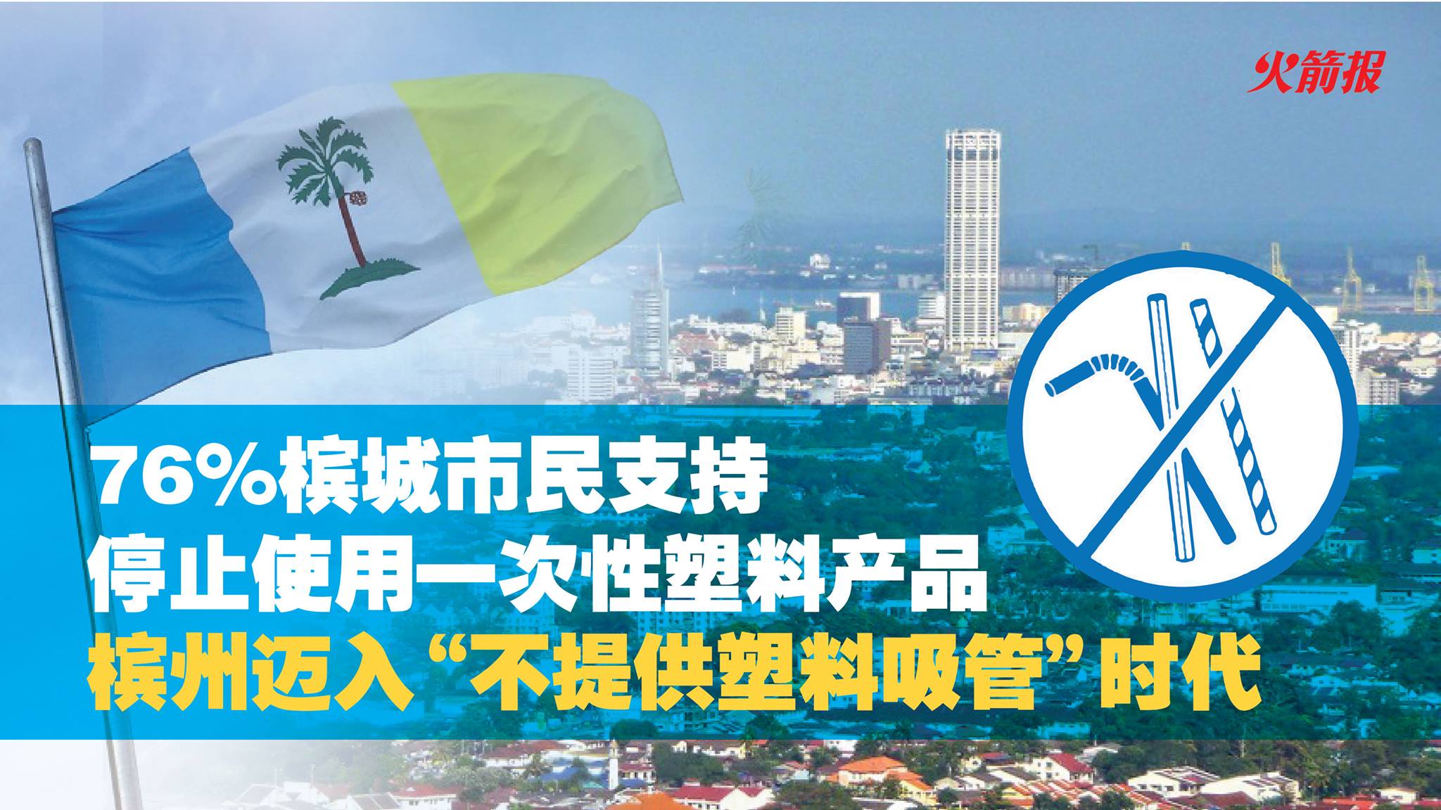 槟州政府于2009年7月至2011年期间推介了“无免费塑料袋运动”,并在各大商场与超市推行“每天都是无免费塑料袋日”。今年,槟州将迈入停止使用一次性塑料产品的另一个阶段,即通过推行“停止使用塑料吸管运动”,来配合马来西亚2030年成为零一次性使用塑料国的愿景,带领槟州全民往绿色州属的目标前进。利益相关的业者将在3月份内参与有关政策的各项活动,而为期6个月的教育醒觉运动将于4月正式开始。
